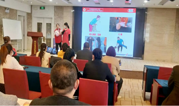 培训老师简要介绍了红十字运动基本知识,重点讲授心肺复苏、气管异物堵塞、创伤救护等急救知识和操作技能,参训职工在培训老师手把手指导下,按照所学知识亲自动手实践异物清除、人工呼吸、心脏按压等心肺复苏抢救规范步骤。参加培训的职工仔细听、认真记,有不懂的问题及时提出,现场气氛活跃,形成了良好的互动氛围。