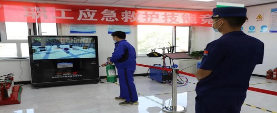 经过线上有奖答题初赛,企业近2万名职工参与,最终27家企业61名职工进入决赛。决赛由理论考试和实操技能考核两个环节组成,理论考试内容主要涵盖《安全生产法》和应急救护等知识,实操考试主要测评参赛选手对虚拟灭火、创伤包扎和心肺复苏三项技能的掌握。