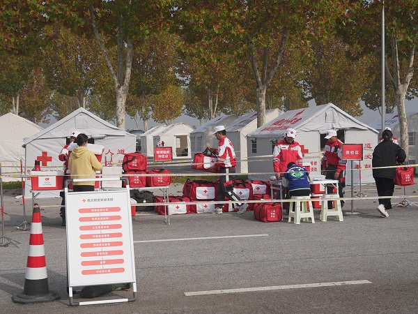 演练模拟重大灾害应急救援全流程,以实战化背景和实景式现场,设置灾情研判、队伍派遣、营地建设、生命搜救、医疗救援、救护转运、赈济救援、大众卫生、心理救援、应急供水及后勤保障等10余个演练科目,贴合真实灾害场景,考验队伍应急处置能力、协同配合能力和综合保障能力。其中,中国红十字(宁夏)赈济救援队聚焦“物资保障与后勤支撑”,高效完成救灾物资接收、分类管理、精准分发及应急供餐等演练任务;宁夏红十字心理救援队针对“群众灾后心理重建”,通过专业干预技术,为受灾群众提供情绪疏导与心理支持服务。两支队伍在演练中协作有力、配合默契,高质量完成各项既定任务,展现出过硬的专业素养。