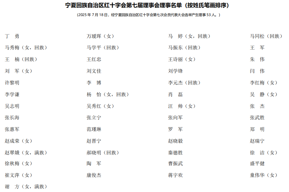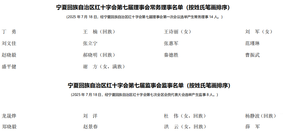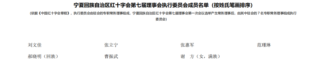 宁夏回族自治区红十字会第七届理事会理事、常务理事、监事、执行委员会成员名单