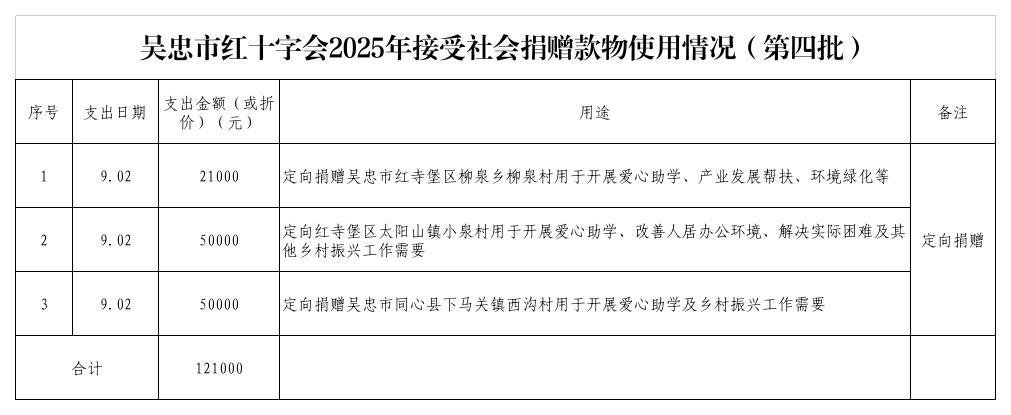公示|吴忠市红十字会2025年接受社会捐赠款物使用情况(第四批)