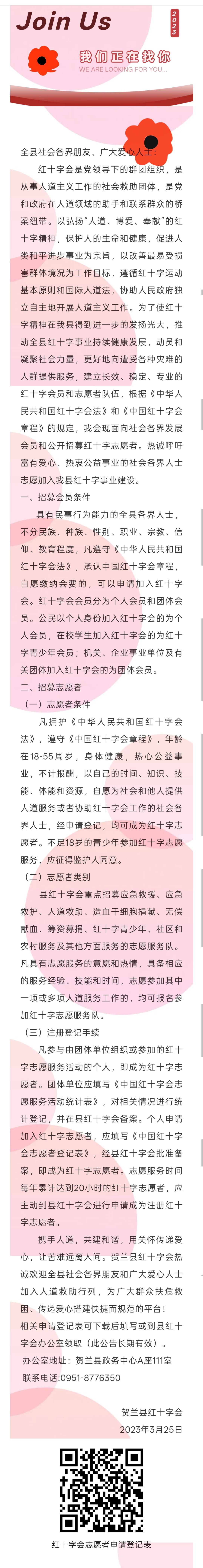 贺兰县红十字会发展会员和招募志愿者倡议书