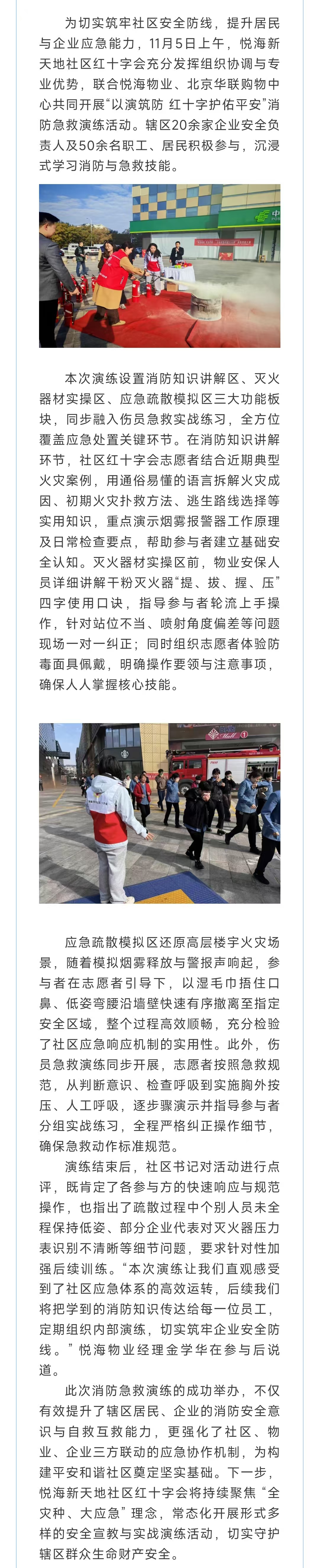 悦海新天地社区红十字会开展“以演筑防 红十字护佑平安”消防急救演练活动