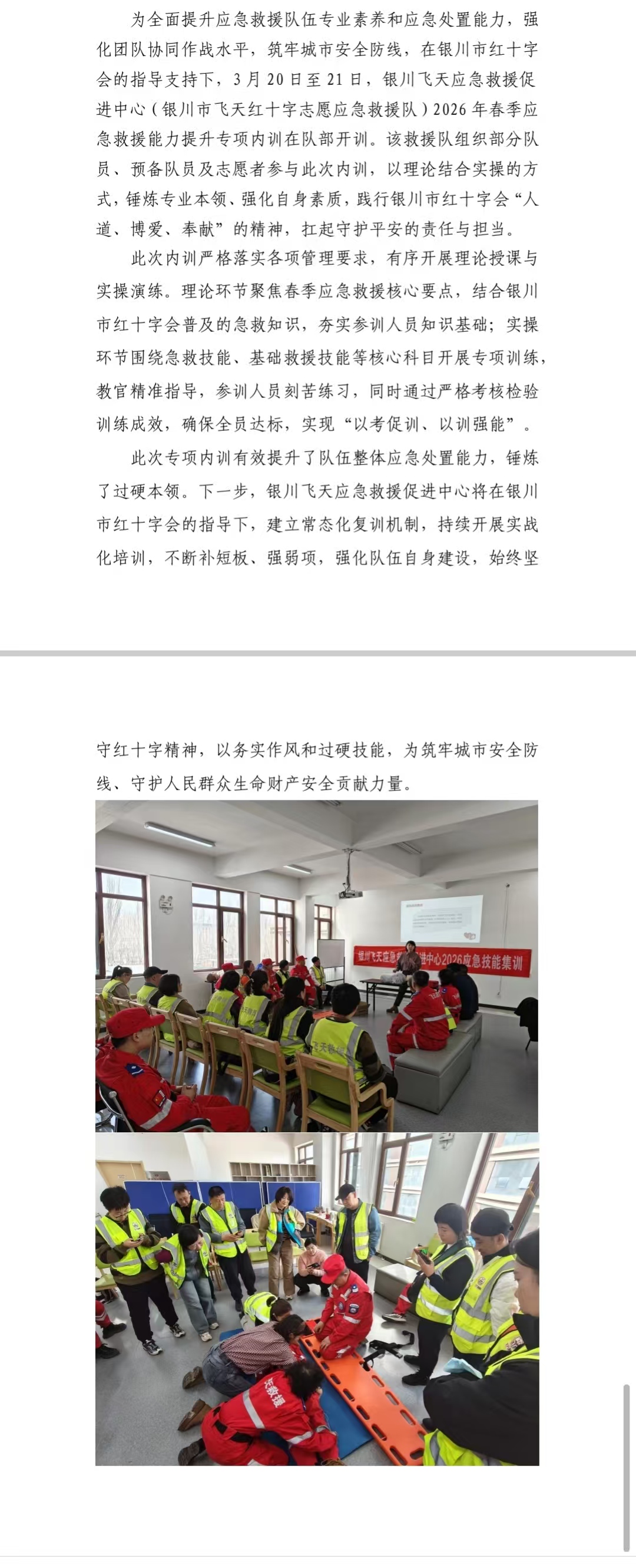 强素质 练技能 保平安 ——银川市飞天红十字志愿应急救援队开展春季应急救援专项内训