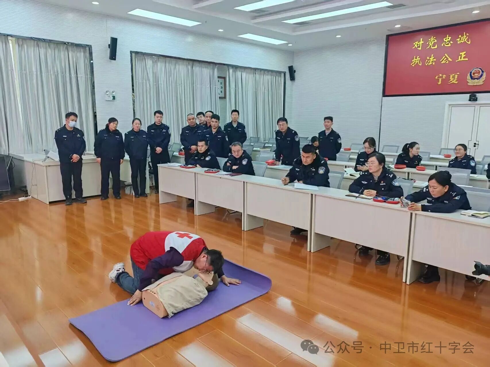 四是走进党政机关,强化履职保障。新春新气象,履职担当更需安全护航。党政机关作为推动各项工作落实的核心力量,工作人员的应急救护能力直接关系到公共服务质量和应急处置成效。中卫市红十字会充分发挥自身优势,主动为市公安局、沙坡头区公安分局开展应急救护培训。培训紧密结合工作实际,围绕公务活动和执法执勤过程中可能遇到的各类突发情况,系统讲解应急救护相关知识和实操技能,注重理论与实践相结合、讲解与互动相统一。通过培训,进一步提升了机关工作人员的应急救护素养和履职能力,使其在日常工作中既能有效保护自身安全,又能及时为群众提供必要的应急帮助,充分发挥了党政机关在应急救护工作中的示范引领作用,以专业守护迎接新春的到来。