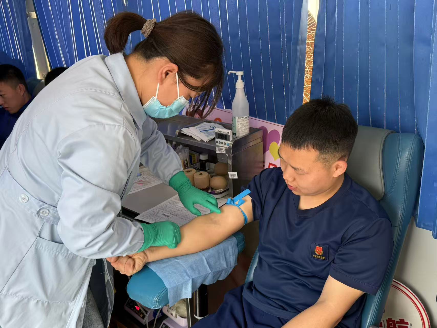 针对不同群体的职业特点与接受能力,红十字师资团队摒弃“一刀切”的教学模式,实行“按需送教”与“精准施教”。在沙坡头区应急管理局,针对公职人员工作节奏快、接触人群广的特点,重点开展“应急第一响应人”培训。课程聚焦心肺复苏(CPR)、自动体外除颤器(AED)操作以及常见办公突发疾病(如晕厥、心梗前兆识别)的应急处置 。师资通过还原办公场景,让学员掌握在专业医护人员到达前的“黄金四分钟”如何有效施救;在文昌镇丰安社区,考虑到社区居民中老年群体占比高、意外风险多的现状,培训内容更加侧重于日常生活安全。师资们用通俗易懂的语言,结合高血压、冠心病等慢性病防治,讲解气道异物梗阻(海姆立克急救法)、跌倒摔伤处理等实用技能 。同时,通过真实的本土捐献者故事,用“拉家常”的方式打破学员对遗体器官捐献的传统观念和心理壁垒;在中卫市中医医院,针对医护人员专业基础扎实的特点,培训重点转向“医防融合”与“捐献协调”。除了强化急救技能的规范化操作外,重点开展了《人体器官捐献和移植条例》的政策解读,通过师资的细致讲解后,医护人员当场完成了器官捐献志愿登记 ;在消防救援大队,考虑到消防救援人员长期处于应急救援一线,培训内容重点强化在复杂救援环境下如何快速评估伤情、科学施救,避免二次伤害。同时将人体器官捐献和无偿献血宣传融入培训,引导消防救援人员在挽救生命的同时,理解“生命接力”的深刻内涵。培训结束后,多名消防救援人员自发登上采血车,踊跃参与无偿献血,用实际行动诠释“人民消防为人民”的铮铮誓言,将所学所感转化为奉献社会的具体实践。