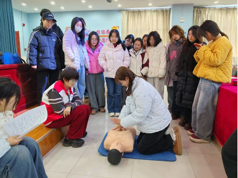在实操练习环节,学员们分组利用模拟人教具,在讲师与助教的悉心指导下,反复练习胸外按压的深度、频率和手法,认真模拟AED操作与海姆立克急救法的标准动作,确保了每位学员都能听得懂、记得住、会操作。