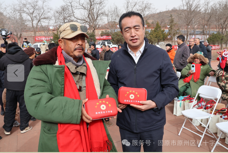 11月27日,原州区红十字会组织志愿者为自新疆哈密巴里坤启程,沿着古丝绸之路北道一路东行的“东天山骆驼队”33人送去了急救包。