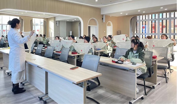实操环节,讲师依托仿真教具,分步拆解动作要领,带领教职工逐一实操演练,通过情景模拟,检验学习成果,确保熟练掌握。