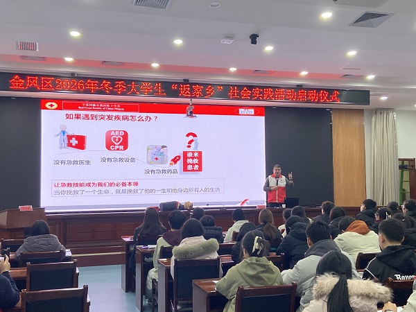 1月18日,银川市金凤区红十字会,为2026年冬季“返家乡”社会实践的大学生,举办了一场生动实用的应急救护专题讲座。