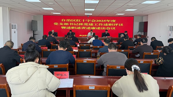 为深入学习贯彻习近平新时代中国特色社会主义思想,压紧压实基层党建工作责任,推动党建工作与业务深度融合、同频共振,1月26日,自治区红十字会召开2025年度党支部书记抓党建工作述职评议暨述职述责述廉述法会议。自治区红十字会党组班子成员、各党支部书记及全体干部职工参加,区直机关“三级三长”第七督导组组长郝雨到会指导。