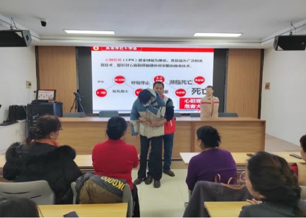 12月12日,吴忠市利通区红十字会在金星镇金花园社区组织开展了红十字应急救护培训活动,手把手指导居民如何做正确进行胸外按压、人工呼吸动等急救动作。社区居民40多人参加了培训,填补了居民们的急救知识空白。
