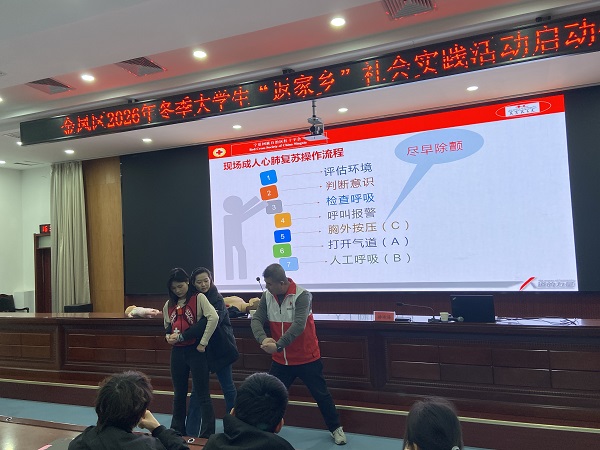 1月18日,银川市金凤区红十字会,为2026年冬季“返家乡”社会实践的大学生,举办了一场生动实用的应急救护专题讲座。