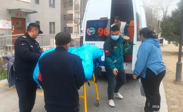 等120医护人员抵达后,应急人员配合医护人员搬运急救设备、清理通行障碍,小心翼翼将老人平稳转移至担架,全程衔接顺畅、配合默契,直至救护车顺利驶离小区,救援圆满收官。这场高效救援,是金凤区红十字会打造绿色急救社区、推动“社区+物业+120”多方联动机制落地的生动实践。