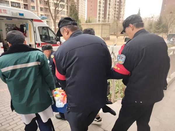 接到求援电话后,物业值班人员第一时间启动小区应急处置预案。物业主管沉着部署,一边开通绿色急救通道,打通急救车辆通行“最后一百米”。一边快速集结应急小队,争分夺秒奔赴事发地,为前期施救赢得宝贵时间。抵达老人家后,应急人员严格遵循红十字应急救护规范,第一时间开展伤情排查,为老人进行伤口消毒、规范包扎,专业标准的操作有效避免伤情恶化。同时,安抚老人的情绪,缓解其心理压力,联系远在外地的亲属,详细告知现场情况、施救措施及后续送医安排,用专业与温情让亲属安心。