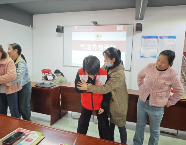 活动现场,县红会应急救护师资为大家详细讲解了海姆立克急救法的具体步骤和应用场景。海姆立克急救法是一种针对气道堵塞的紧急救治方法,通常用于食物或异物导致的窒息情况。老师通过生动形象地示范,展示了如何在遇到窒息事件时快速、有效地实施该方法。