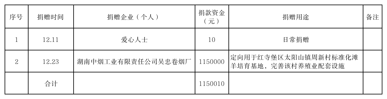 公示|吴忠市红十字会接受社会捐赠情况(2025年12月)
