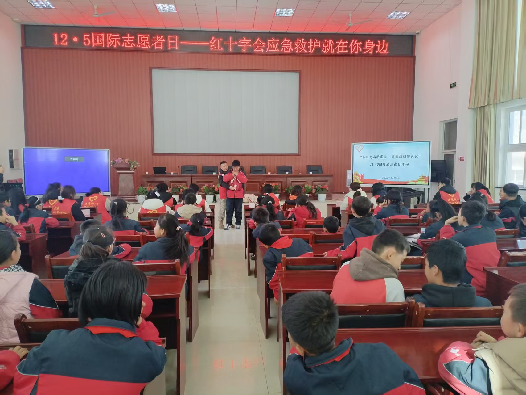 2025年12月5日,在第40个国际志愿者日来临之际,中宁县红十字会走进宽口井九年制学校,开展了“冬日志愿护成长·青春践诺解民忧”主题志愿服务活动。