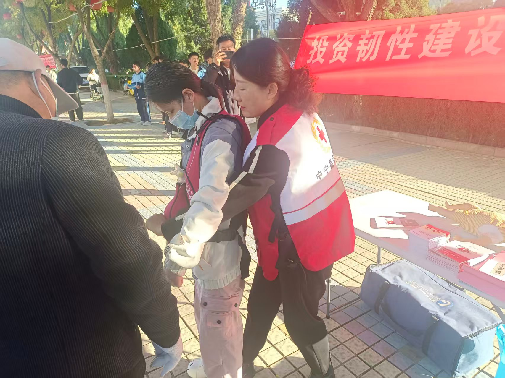 为做好中宁县“10·13”国际减灾日主题宣传教育活动,进一步增强全社会防灾减灾救灾意识、提高防灾减灾救灾能力,筑牢社区安全防线,中宁县红十字会于2025年10月13日在富康广场成功举办了“投资韧性建设,提升防灾减灾能力”户外主题宣传与急救技能普及活动。本次活动旨在通过面对面的讲解与实操训练,将防灾减灾救灾知识和急救技能直接送达公众,提升城市整体韧性与民众应急处突能力。